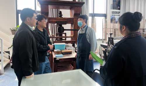 在设计艺术学院党委书记史民峰教授的带领下,调研组首先参观了该校重大设计项目专题展及艺术教育成果展。史民峰教授详细介绍了该校服务国家战略需求、深耕艺术设计领域的实践成果,重点展示了师生团队参与2008年北京奥运会、2022年北京冬奥会视觉设计项目的经典案例,凸显了该校“传承弘扬印刷文明,创新发展出版文化”的办学使命。调研组对北京印刷学院将专业建设与国家重大活动紧密结合的创新模式表示高度赞赏,并就跨学科协作、产教融合机制展开深入探讨。