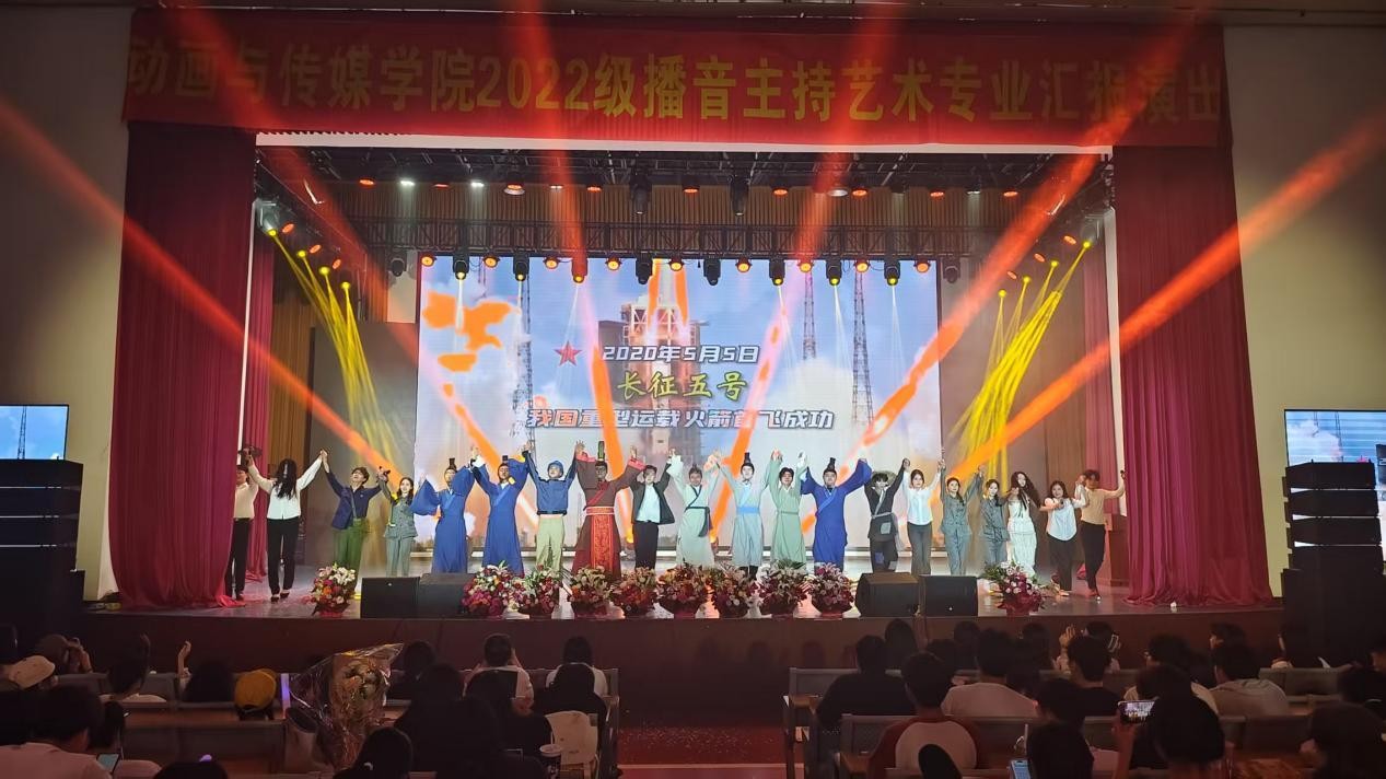 近日, 传媒艺术学院2022 级播音与主持艺术专业 “声漾星河,音启新程”汇报演出在西校区大礼堂成功举办。