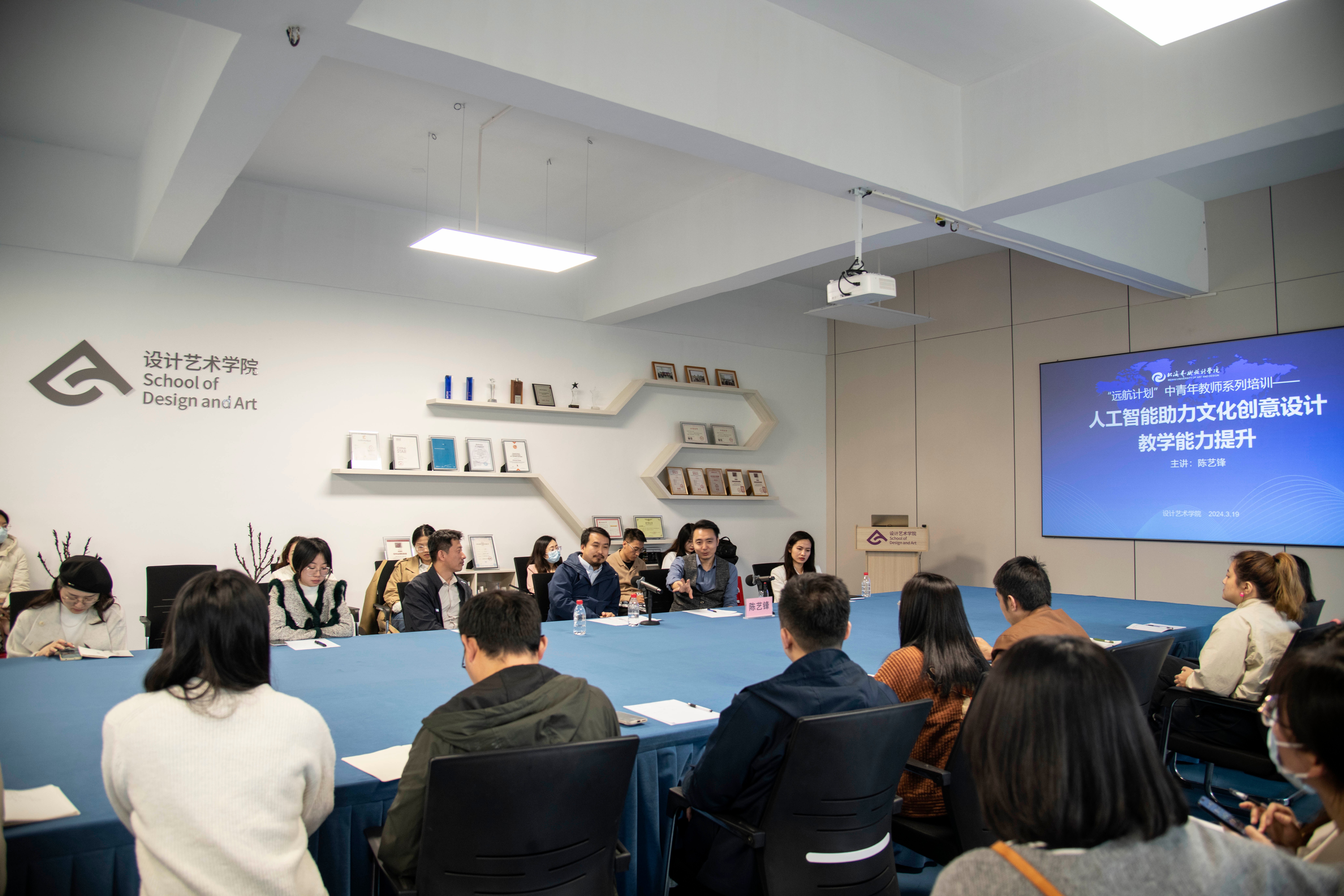 本次培训在设计艺术学院伦理楼408室开展,学院党总支书记黄锦、院长李林平、副院长白建强、实验室主任郑哲瀚及众多教师共同参加,聆听陈艺锋教授的精彩分享。