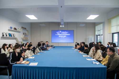 在随后的交流环节中,与会教师们纷纷向陈艺锋教授请教问题,分享自己的心得。白建强副院长对AI技术在设计领域教学中的影响给予了高度重视,与陈教授就如何更好地结合AI技术提升设计教学的质量和效果进行了深入交流。视觉传达设计专任教师曾竹竹谈到了如何引导学生正确使用AI工具的问题,她认为教师应注重理性、正向的引导,避免学生陷入过度依赖的困境。