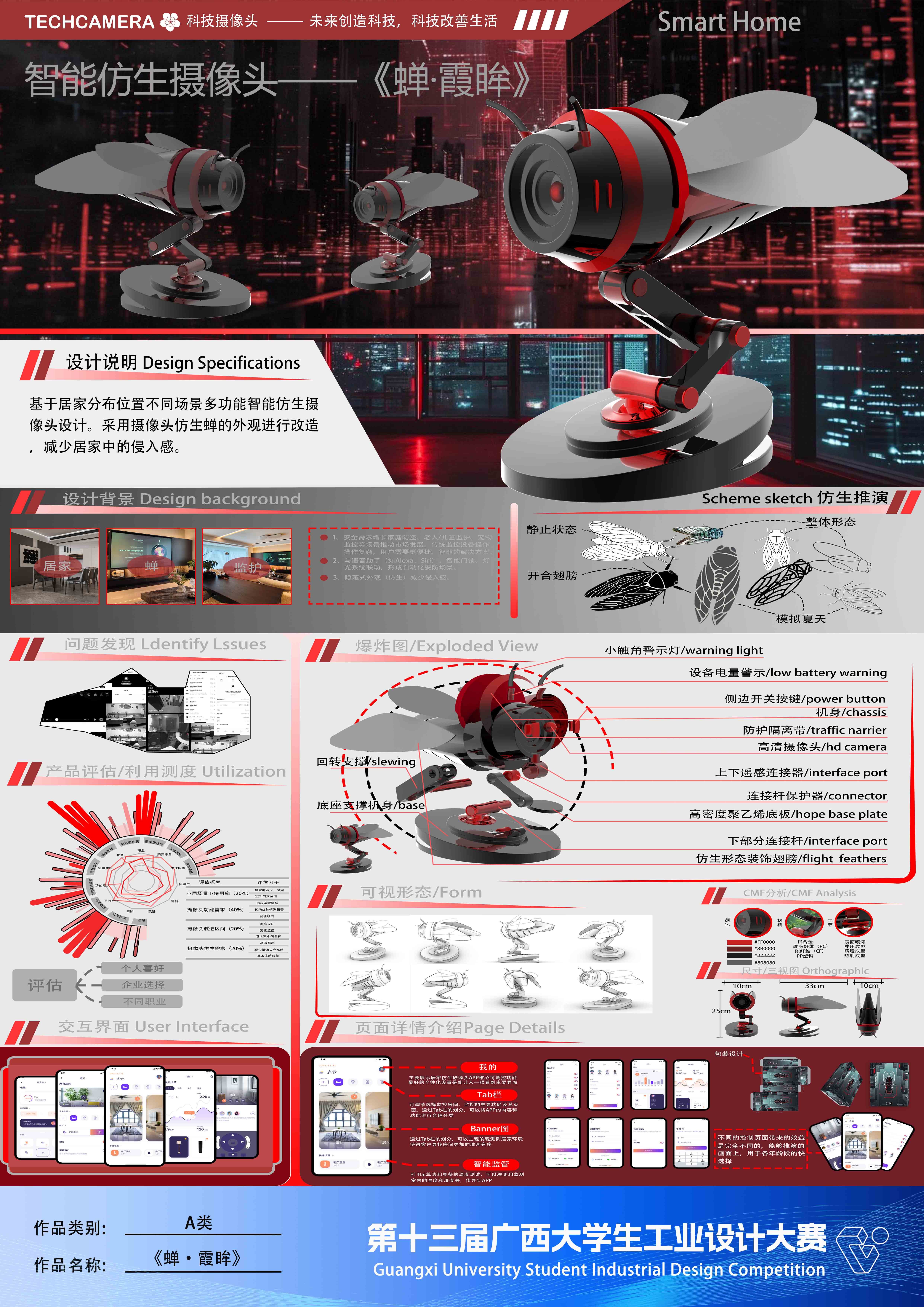 作品名称:《蝉 ·霞眸—智能居家仿生摄像头》