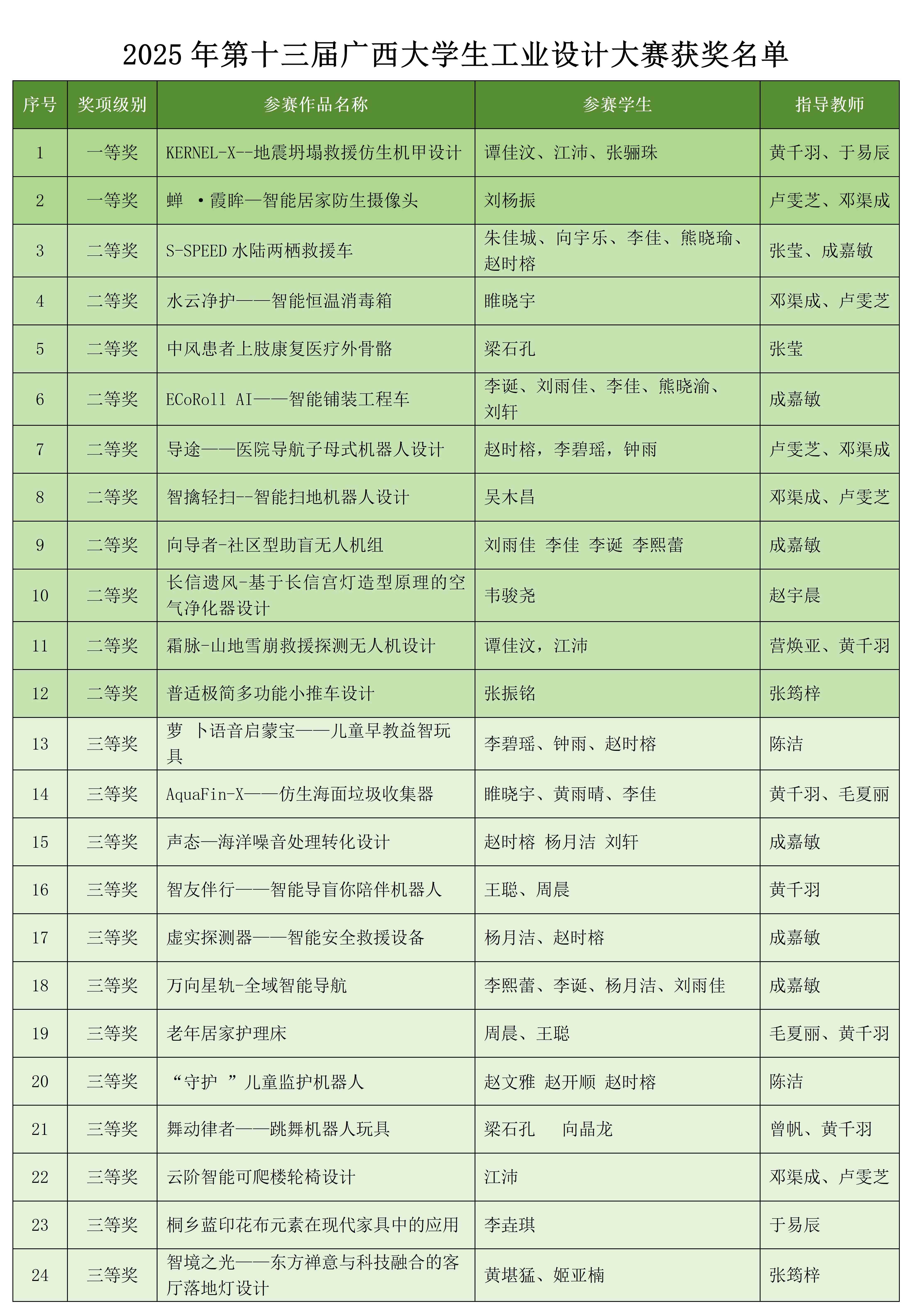 喜报——我院在2025年第十三届广西大学生工业设计大赛荣获再创佳绩