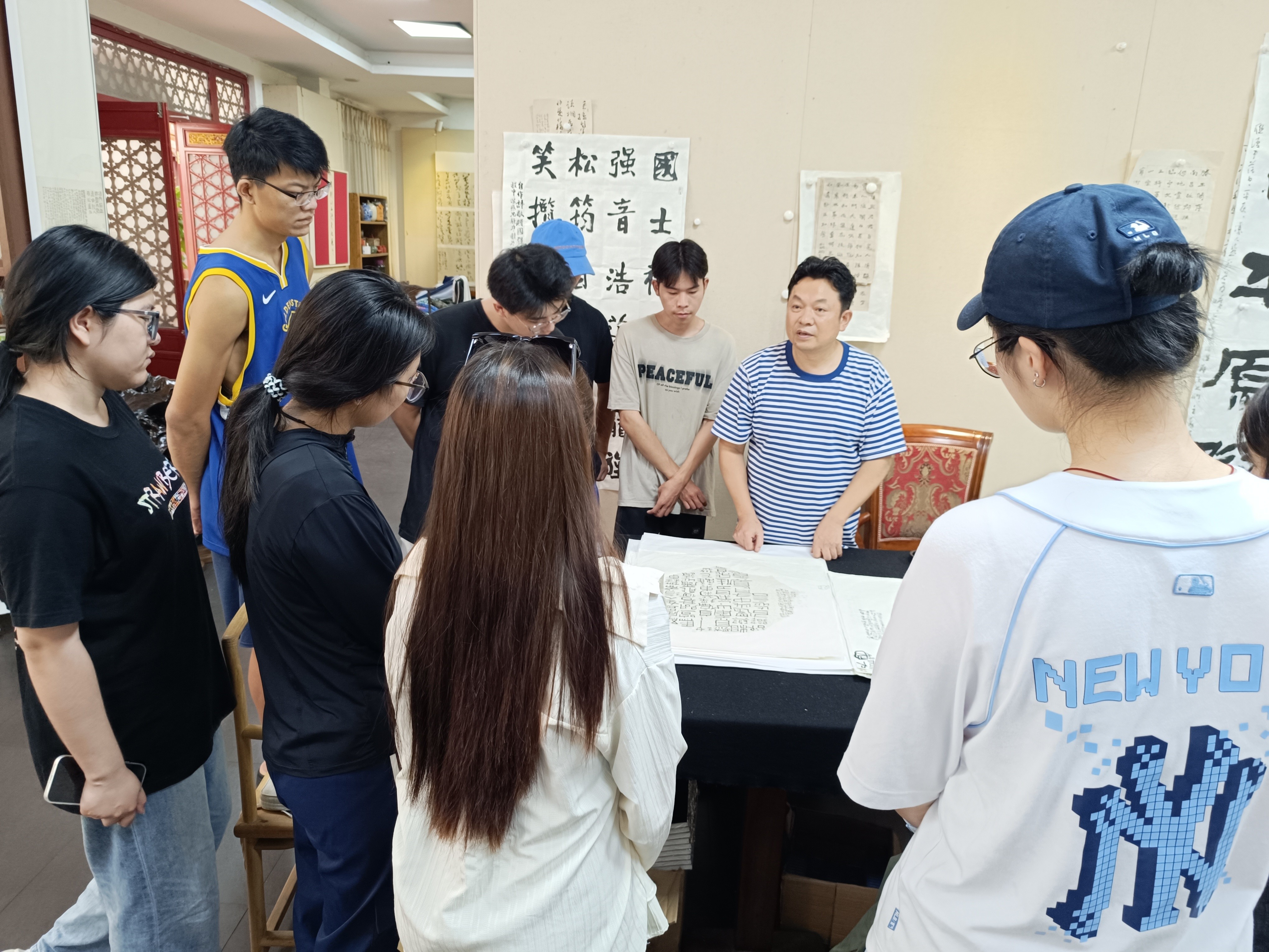 此次研学考察是书法学院实践教学的重要环节。学院通过整合北京优质文化资源,构建“课堂+展馆+古迹”的多元实践体系,助力学生拓宽艺术视野。学生们纷纷表示,周老师的作品与理念让他们深刻体会到书法的生命力,未来将更加注重技法锤炼与文化积淀,努力成为“有技法、有文化、有担当”的新时代书法人才。张天赋 摄)