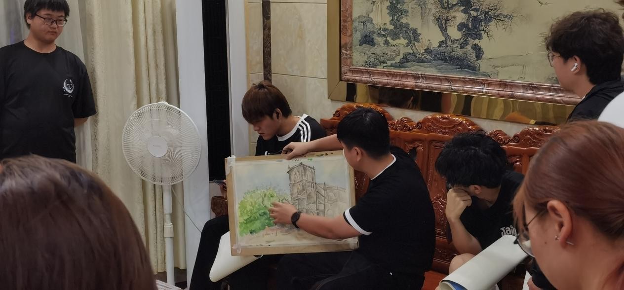 从当日晚间开始,教学活动延续至课后,每日例行的教师评画准时举行。在评画会上,老师们对学生的当日作品进行逐一细致点评,从构图、透视到色彩运用,给予了专业指导,使同学们能够及时发现问题、调整思路,实现“日有所绘,日有所进”。
