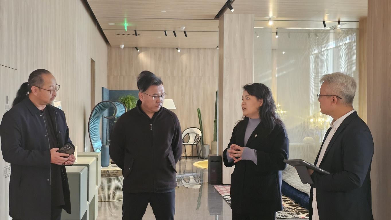 团队还专程前往由我院04级优秀毕业生陈利珍创办的予舍方元工作室,了解其以主营乔金斯高端整木定制品牌为核心,聚焦“空间全案定制+生活美学赋能”的高端整木定制与空间全案服务。陈利珍向走访团队详细介绍了工作室的发展历程、业务范围及核心设计理念,并分享了毕业后从行业新人成长为创业带头人的经验。
