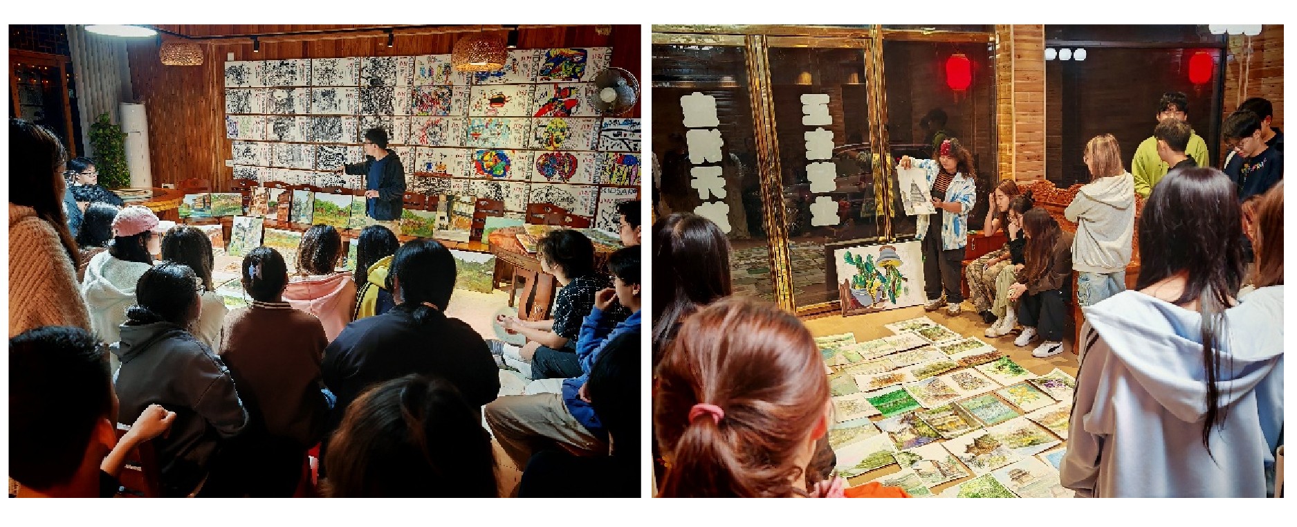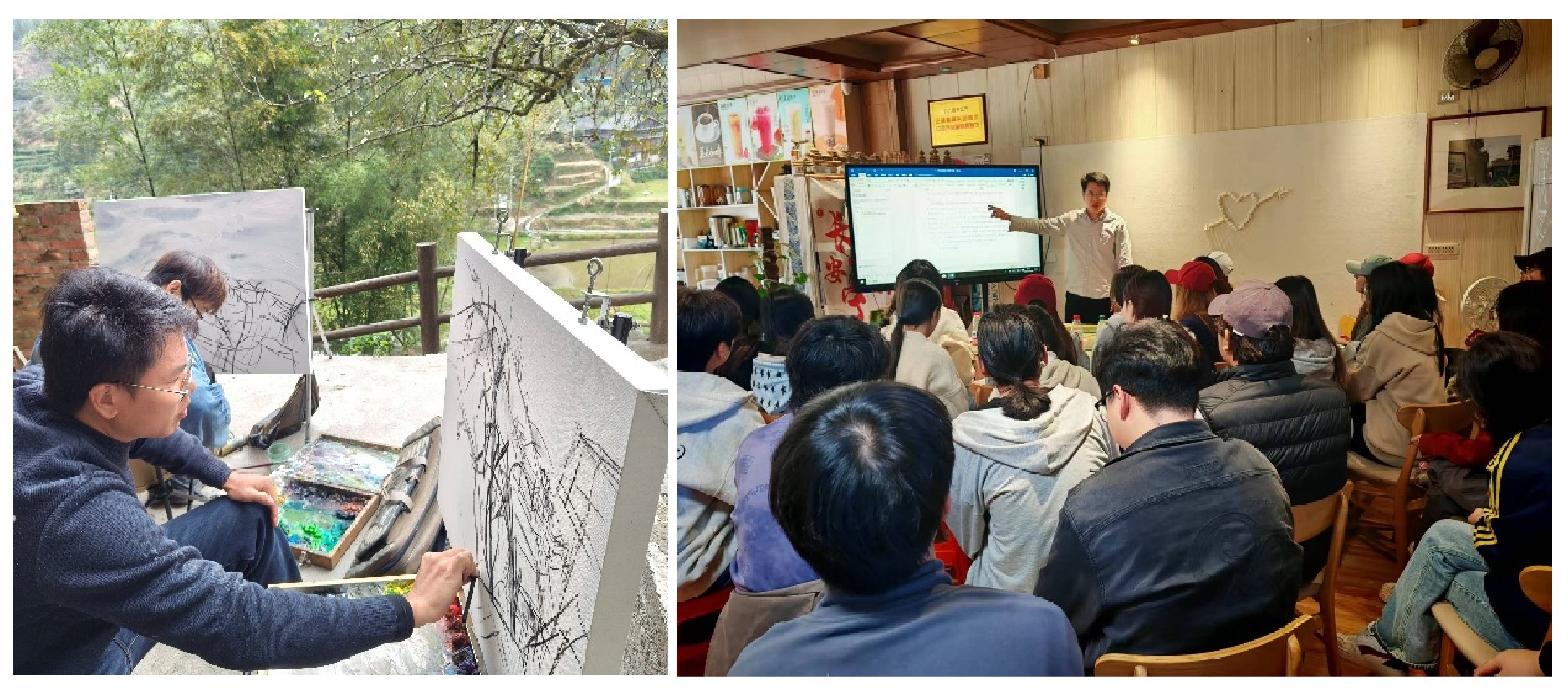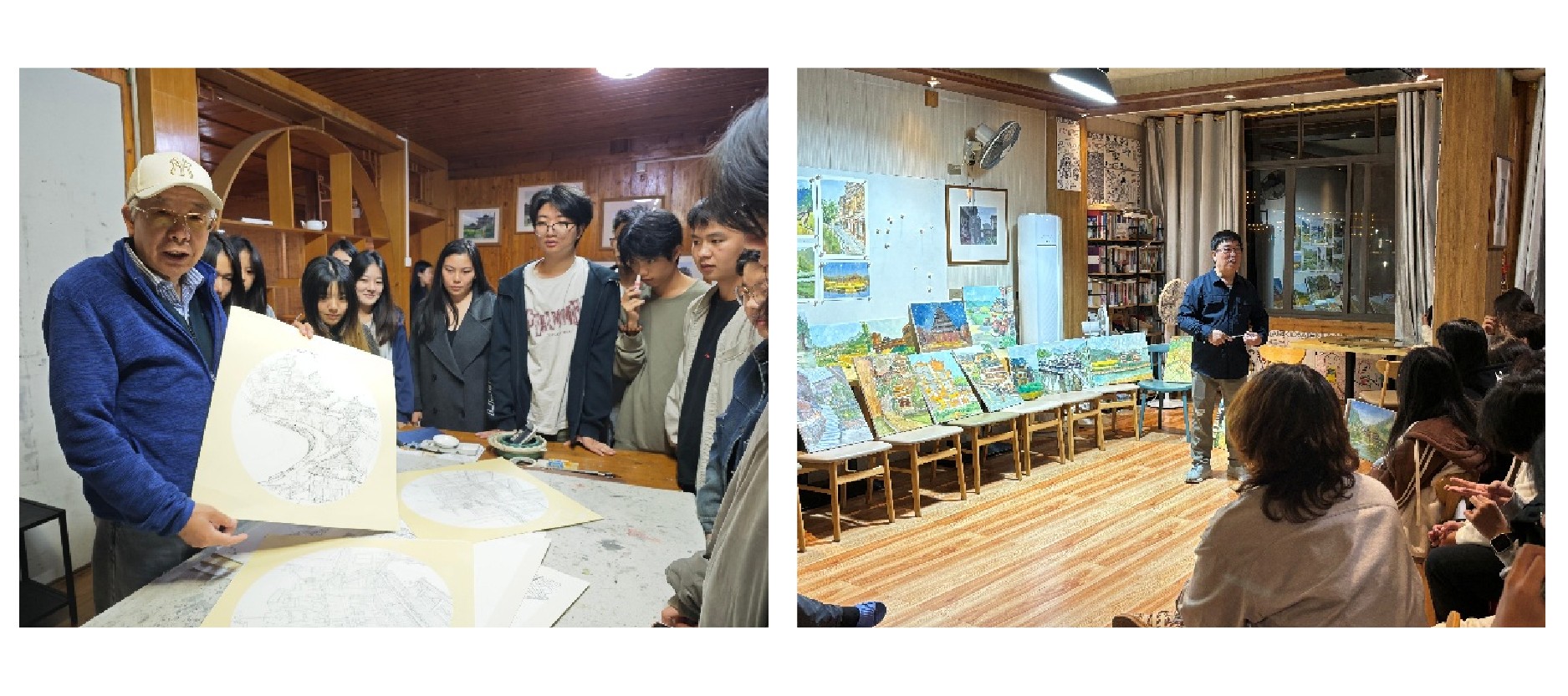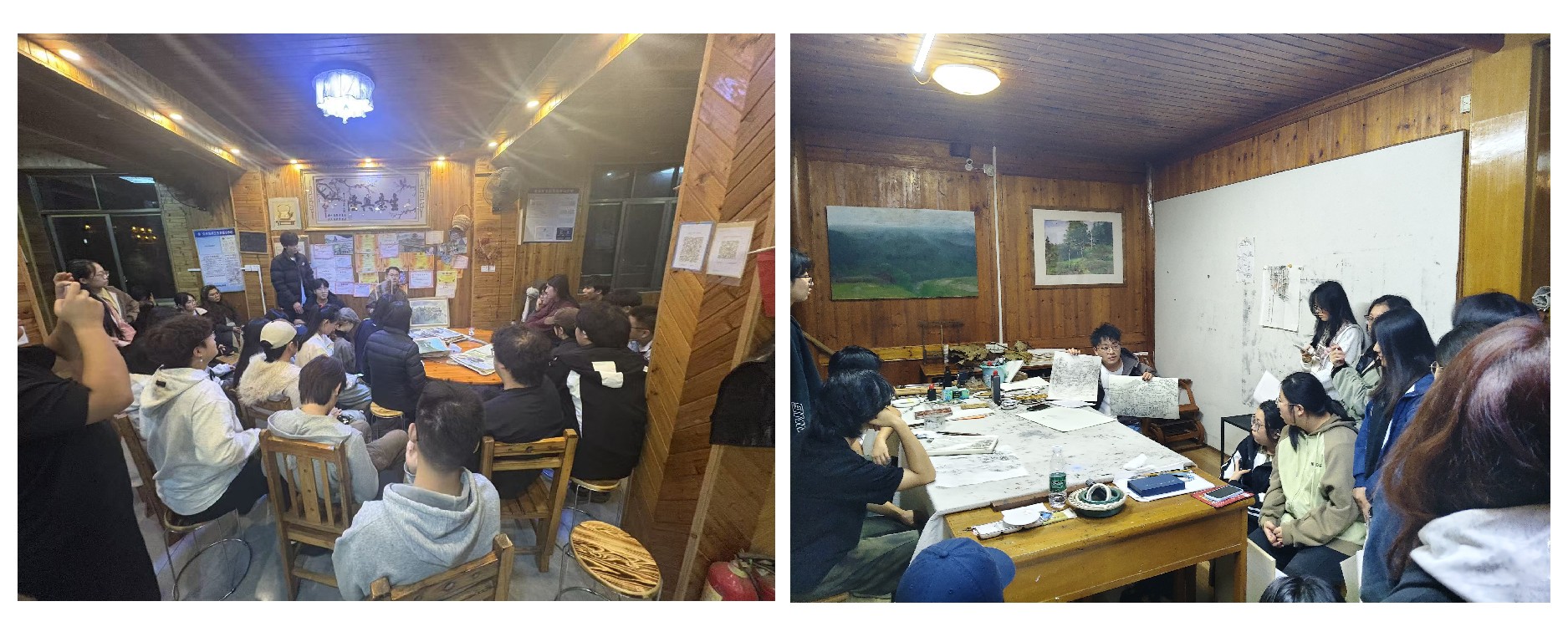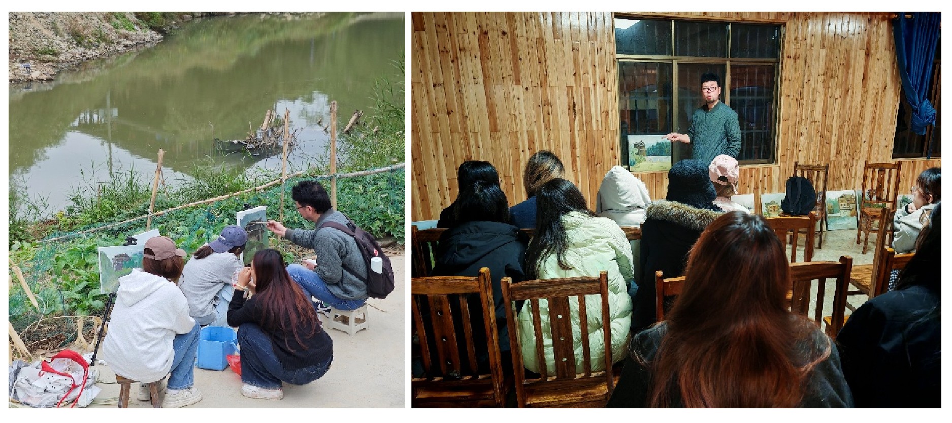 程宣睿老师写生示范现场                                                       金昊宏老师点评作业现场