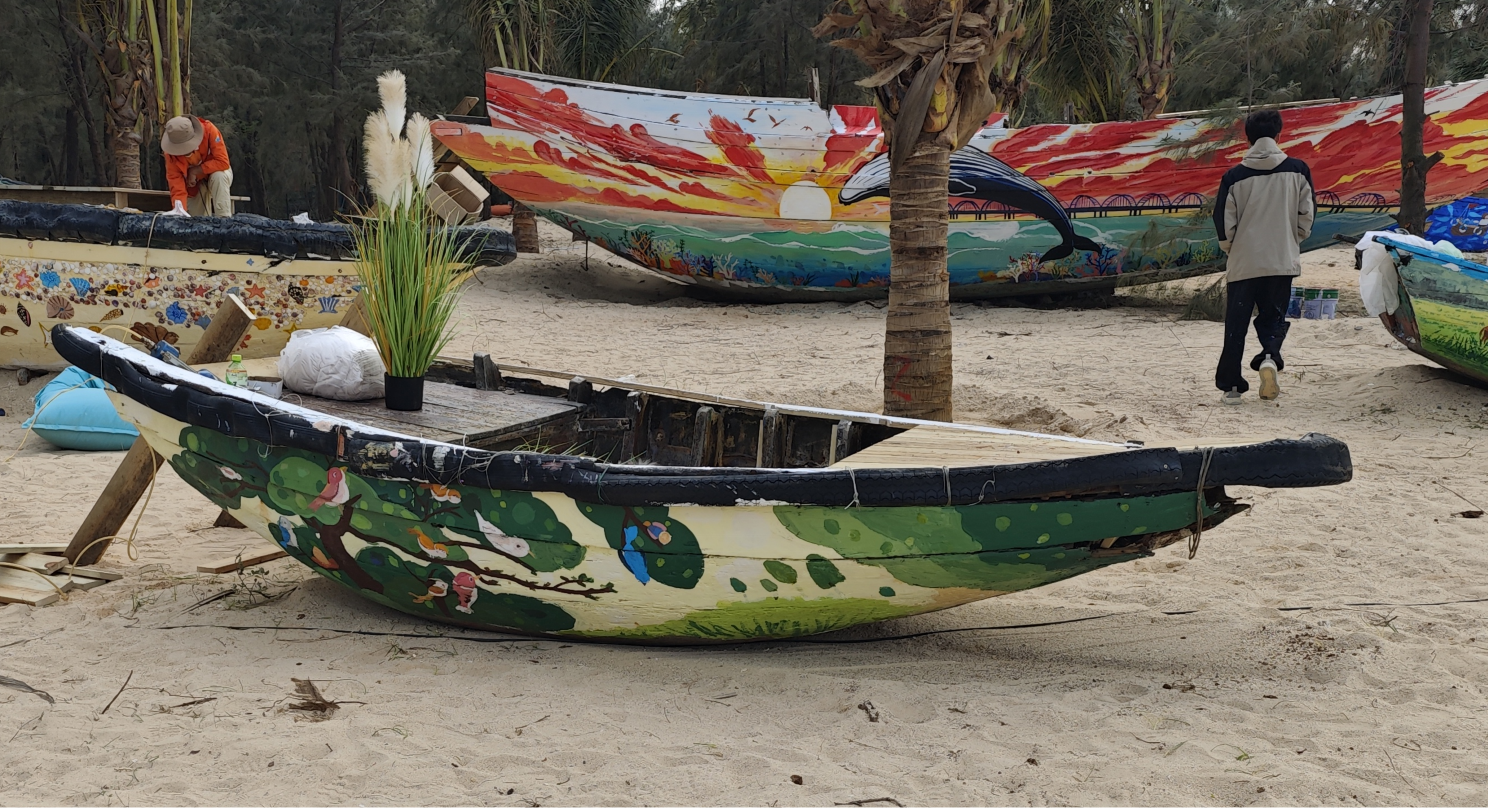 2025年11月14日,我院收到北海市涠洲岛旅游区管理委员会的紧急委托共有9艘木质渔船需要进行艺术彩绘迎接11月24日起的“涠洲岛绿地毯影视周”活动,由于时间紧迫需要在11月22日前完成。