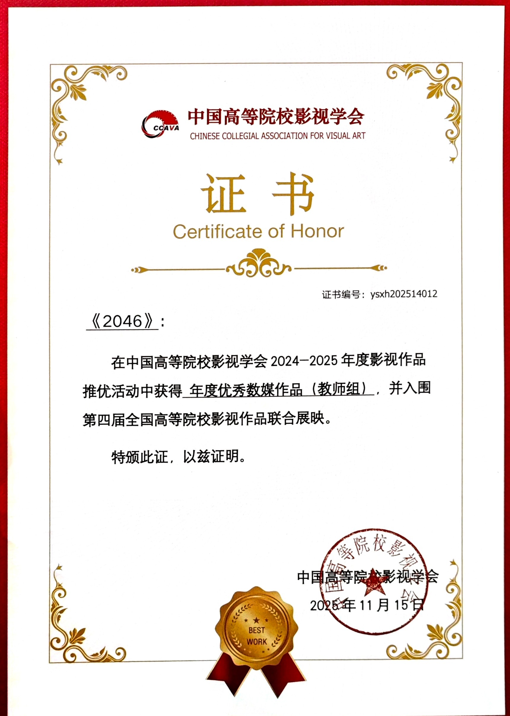 陈蔓延老师的AI作品《2046》凭借独特的创作视角、扎实的艺术表达与深刻的主题内涵,成功入围第四届全国高校影视作品联合展映。本次展映汇聚全国高校优质影视创作成果,竞争激烈。作品的入围既展现了陈蔓延老师在影视创作领域的专业功底与创新思维,也彰显了学院在影视创作实践方面的实际成效。
