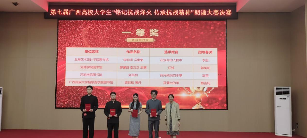 近日,第七届广西高校大学生朗诵大赛现场决赛在南宁师范大学明秀校区文星楼301报告厅圆满落幕。传媒艺术学院2024级播音与主持艺术专业学生李昀泽、冯奎荣携作品《在欢呼的人群中》斩获一等奖,指导老师李超荣获“优秀指导教师奖”,为学校再添荣誉。