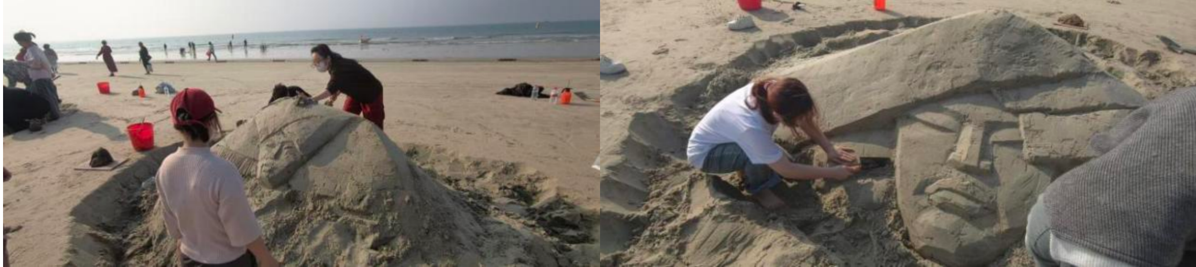 《沙雕创作》课程是我校雕塑专业综合实验教学课程之一,也是雕塑专业特色课程。将课堂学习的专业知识与实地的实践创作相结合,有效的提高学生专业的横向度与审美创新力,同时验证了学生的实践能力与创新能力,是课程改革的典型成功案例。