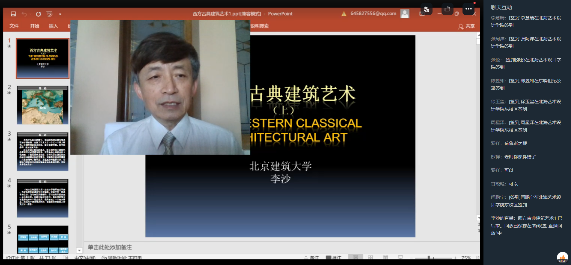 为丰富中外建筑史课程内容,我校特邀北京建筑大学李莎教授于3月19日~4月23日期间为我校21级环境设计专业400余名学生开展中外建筑史专题版块课程讲座。