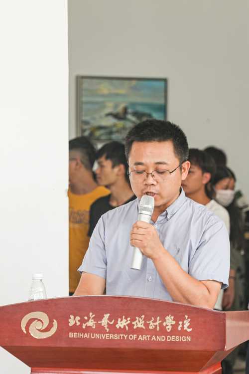 开幕式开始第一项,龚为副院长为大家介绍本次展览活动简况。龚为副院长表示,在成果展开始之前要感谢各位老师的付出。在这三年多的教学过程中,大三同学都收获颇丰。每一幅作品都是同学们的坚持和努力的结果,也包含了专业老师的辛勤耕耘。这次的成果展是美术学院经过精心筹备,展示同学们这些年来在学习上的积累和成果。美术学院一直致力于引进优秀资源,为大家建立良好的教学环境。这次展览不仅希望大三学子能看到自己的满意答卷,也激励学弟学妹们努力奋斗,也希望学院培养出更多优秀的人才。