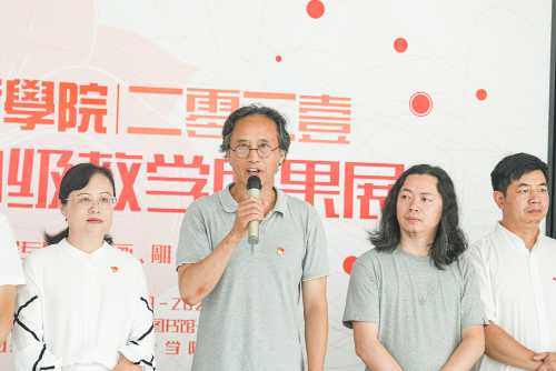 随后,开幕式进行第三项,由卢新华校长致辞。卢新华校长表示,此次展览涵盖了绘画、雕塑、摄影课程中的教学成果。通过这次展示,同学们肯定能在其中体会到奋发拼搏,努力向上的精神。希望大家能确立自己的目标并勇敢追梦。同时有了一定的成绩之后也不要骄傲。去到北京是一个新的机会,毕业设计和毕业论文也至关重要,希望大家能够给自己一份满意的答卷。卢新华校长祝愿即将去往北京的大三学子在快速适应新环境之后努力学习并取得优异成绩。