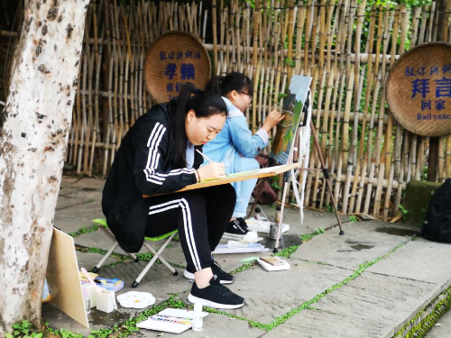 2017级美术学院绘画专业写生随着师生们满载而归的作品成功落下帷幕。(陈建江 摄)
