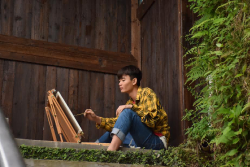 在程阳八寨写生期间,我们请来了程阳八寨本地带有浓郁民族特色的侗族村民来作为模特,进行色彩肖像写生,作为我们对于侗族人民的友好和热情表示致敬。同学们和老师们都将自己的创作才能,挥洒在这片净土之上。