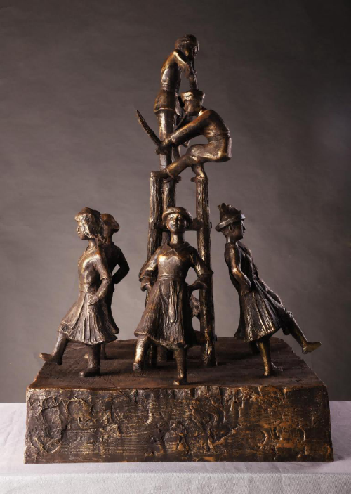 然而出乎意料的是,我们班坚持到最后居然真能做出三件紧扣题材和思想明确的艺术作品,它们分别是孙浩的《茶歌》、黄健武的《舞芦笙》和张尧的《那山那歌》,这三件作品光草图就被我否定了十次有余,泥稿更是耗时两个月。再到玻璃钢翻模,最后上色,他们都表现出了惊人的毅力。
