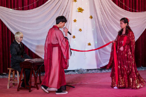 时间飞逝,不知不觉晚会已经到了尾声。在主持人的祝福中,晚会落下帷幕。让我们共同相约下年的晚会! (金凯靖 摄)