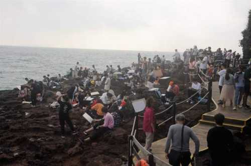 11月20日,全体师生通过栈道步行前往涠洲岛的主要景区——南湾鳄鱼山公园,并在景点集体合影。
