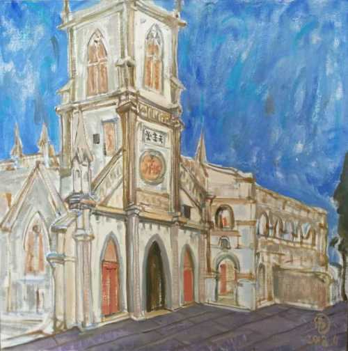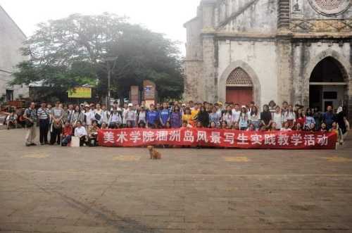 11月21日,全体师生乘车前往涠洲岛天主教堂景点,并集体合影留念。