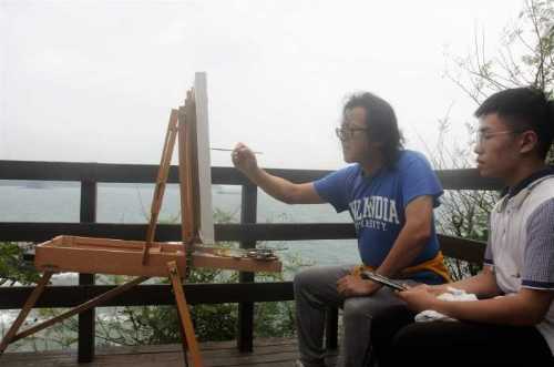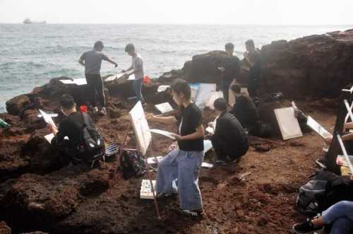 11月22日,全体师生前往涠洲岛老码头,并展开写生。