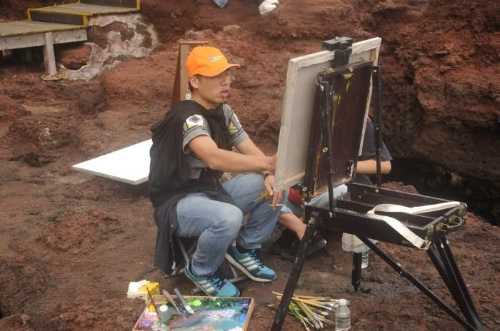 一天的火山口写生结束,为确保同学们能够更加系统的了解风景写生的各方面的知识和技法,每一位任课教师都针对学生作业进行了全面且细致的点评。