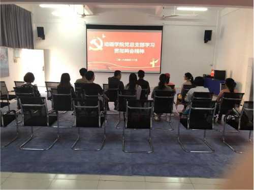 2018年4月12日下午,动画学院党总支部在综合楼四楼演播厅开展党员日学习活动。本次会议主题为“学习两会精神,践行党员责任”。