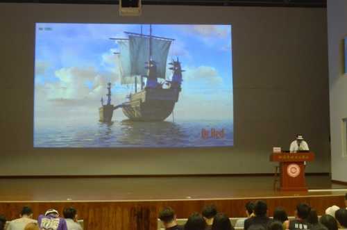 讲座伊始,Jean Poh给大家讲述他在国外工作时的趣事,从而引出大众对动画行业的看法——“神龙见首不见尾”、难以接触 ,并提出“动画行业=娱乐业”这一新的理念,引起在场师生强烈的好奇心。