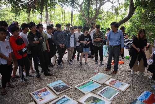 教授提到:在接触大自然事物时要先感受它,仔细观察后再进行笔工创作,在创新亦或是创作时,无论你是有经验的同学还是白纸一张的同学们不要害怕去尝试新事物,不要害怕接受新事物。会画画的同学们注意技巧上东西,而画画功底较低的同学们实事求是,画出心中所想,眼中所看到景物即可。作品中都艺术无高低之分,无好坏之分,只要用心尽力而为的照片就是好作品,而对于同学们来说,这次活动:玩的开心,过的开心,学的看新闻,不仅仅是观赏了岛上美景,更是了解、当地的风俗习惯,懂得专业上的技法。