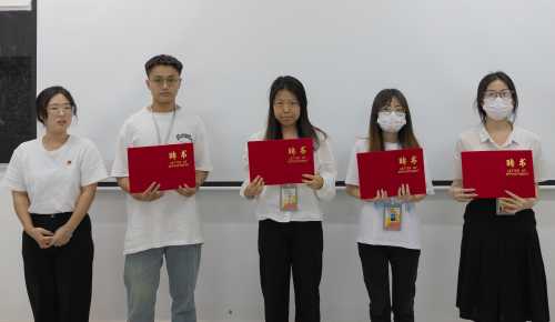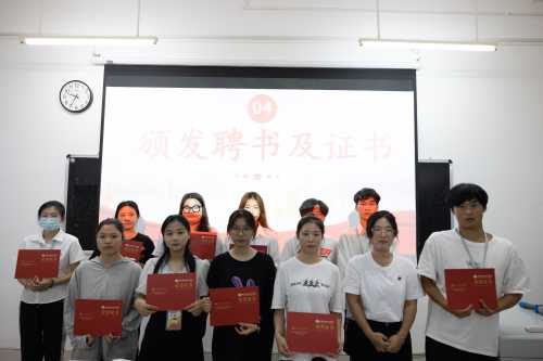大会第三项议程,由史晓菲老师为分团委干事颁发聘书以及优秀干事、优秀部门证书,并进行总结发言。史晓菲老师在发言中勉励新一届的分团委干部学思践悟,知行合一,并对2023-2024第1学年招新工作的开展进行了指导,肯定了三年来大三干事在自己的岗位上辛勤工作,对分团委默默付出,并为即将离校的干事送上祝福。