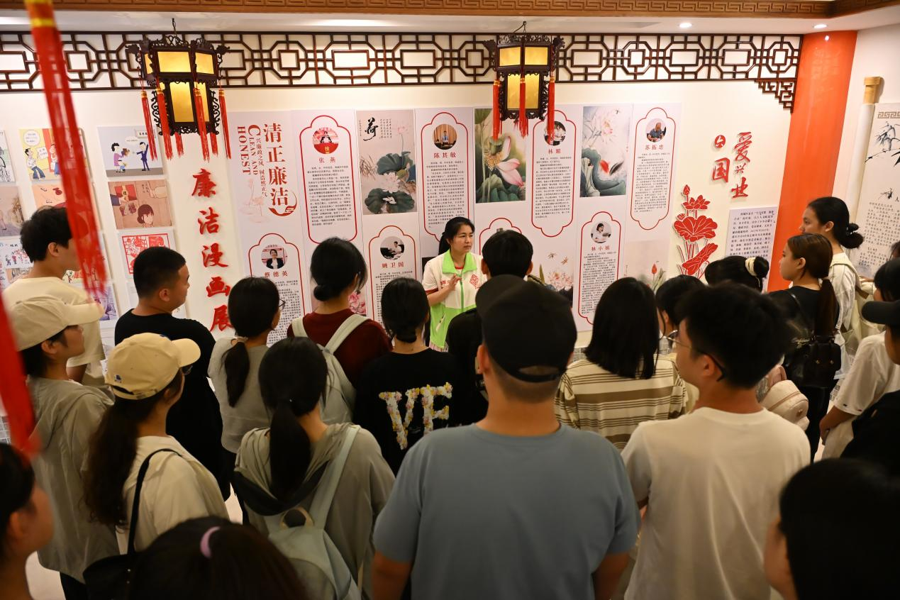 活动最后,志愿者们在张燕书记的带领下,分批次参观了家风家训教育基地。该基地集中展示了社区优秀家庭的治家格言、廉洁故事与传统美德典范。张书记希望志愿者们能够通过本次参观,学习并汲取优秀品质,并在日后的学习和社会实践中得到提升。