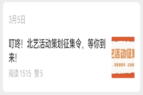 2022年3月5日至4月2日为庆祝中国共产主义青年团建团百年、喜迎党的二十大召开,我校举办以“团徽耀百年,青春需出彩,喜迎二十大”为主题的“北艺活动策划征集令”。此次活动旨在全体北艺学子以青春之名,献礼建团百年,喜迎党的二十大。