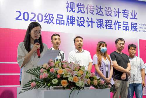 首先,由主课老师陈莎进行发言,陈莎老师介绍了本次展览的主题、教学设计和教学目的,肯定了同学们的设计作品。并表示本次汇报展的作品,是秉承设计艺术学院视觉传达设计教研室产教融合、校企合作、服务地方经济建设、服务社会发展需求的教学理念下,通过“视觉”语言把企业品牌具象化,把品牌价值传达给消费者,为企业塑造可持续性的、器宇非凡的品牌视觉形象。祝愿即将上京赶赴另一段学习的同学们在未来的道路上取得更大的成就和发展。