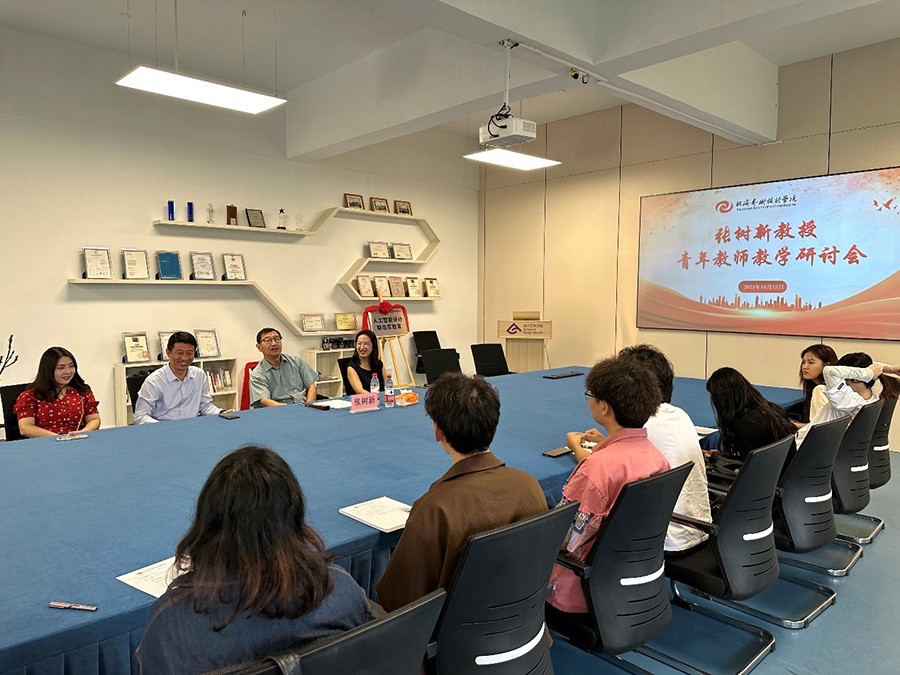 座谈会上,张树新教授分享了在清华美院的教学经验和典型案例,详细讲述了作为专业课教师应该如何关爱学生、鼓励学生并激发学生的内驱力和创造力,如何更新自身的知识并提升综合能力水平。