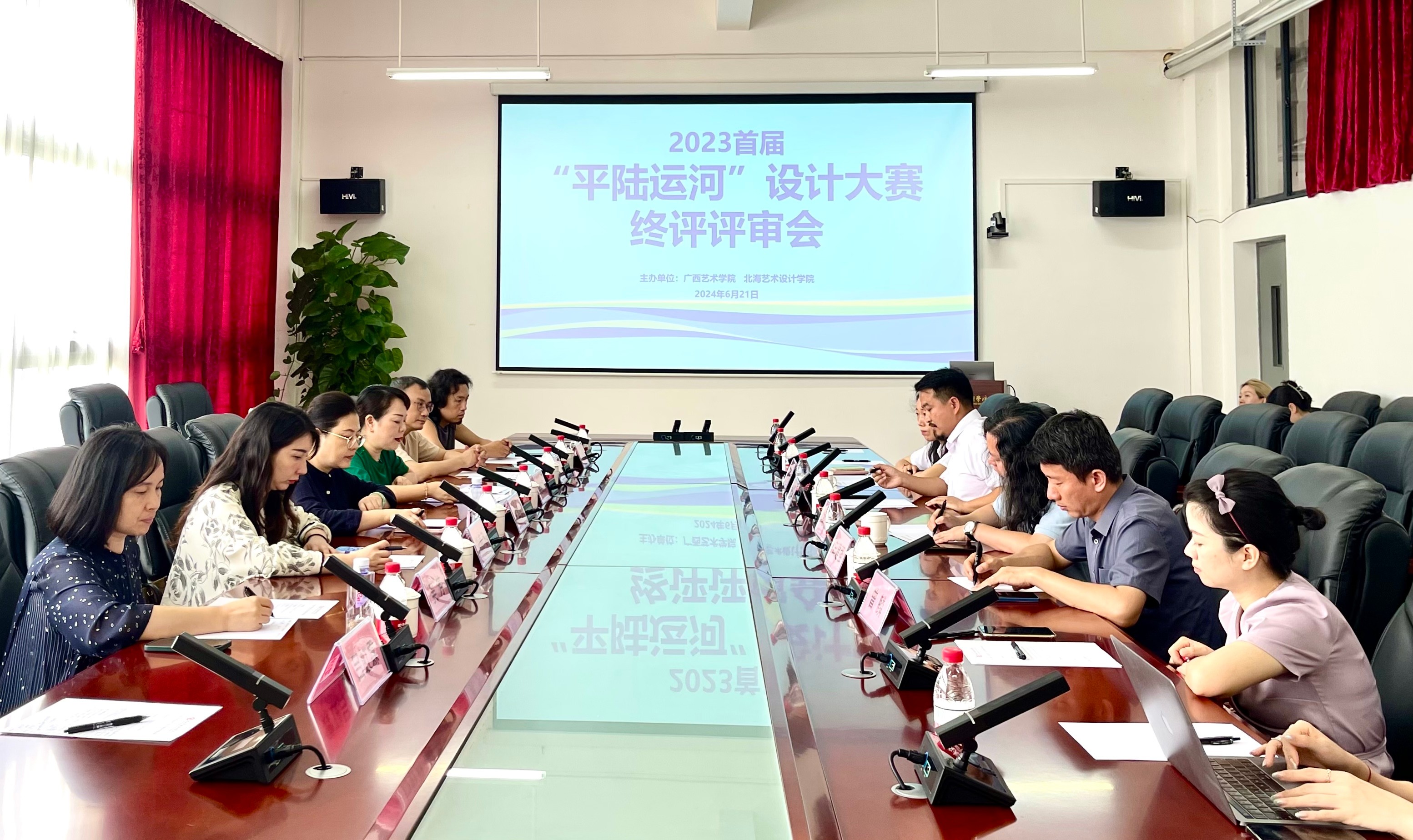 为响应习近平总书记关于平陆运河建设的指示,支持国家重大基础设施项目的发展,推动两校之间的交流与合作,共同促进设计教育的发展与设计人才的培养。6月21日上午,广西艺术学院设计学院院长王华琳、副院长吴红梅受邀带领专家团队来我校,与我校常务副校长胡胜、设计艺术学院领导以及教师团队共同开展2023首届“平陆运河”设计大赛终评会。评审会由设计艺术学院院长李林平主持。