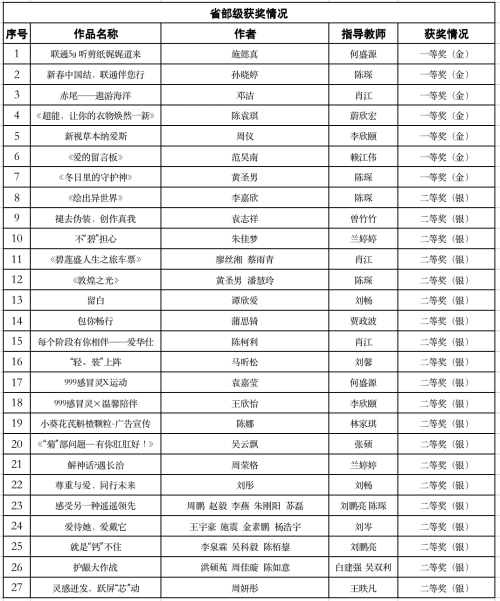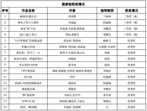 第十六届全国大学生广告艺术大赛颁奖典礼在北京顺利举行。在这场创意与智慧的激烈碰撞中,我院视觉传达专业的学子们在老师们的指导下,力克群雄,荣获国赛共16项,其中二等奖1项,三等奖3项,优秀奖12项;省赛共59项,其中一等奖7项,二等奖23项,三等奖29项,为学校再添辉煌!