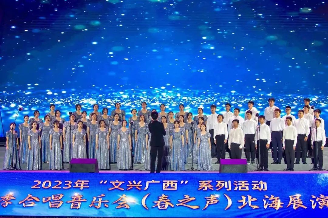 4月1日晚,我校大学生艺术团参加由广西壮族自治区文化和旅游厅、北海市人民政府主办,北海市旅游文体局、广西壮族自治区群众艺术馆等承办的2023年“文兴广西 ”系列活动——四季合唱音乐会(春之声)展演在美丽的北海银滩展演。来自湖南、贵州和广西等地的12支合唱代表队的500多名演员在“南珠之乡”、海上丝绸之路重要始发港共同唱响、奏响春天最“美”的乐章。国家公共文化云等平台对精彩展演进行了现场直播。