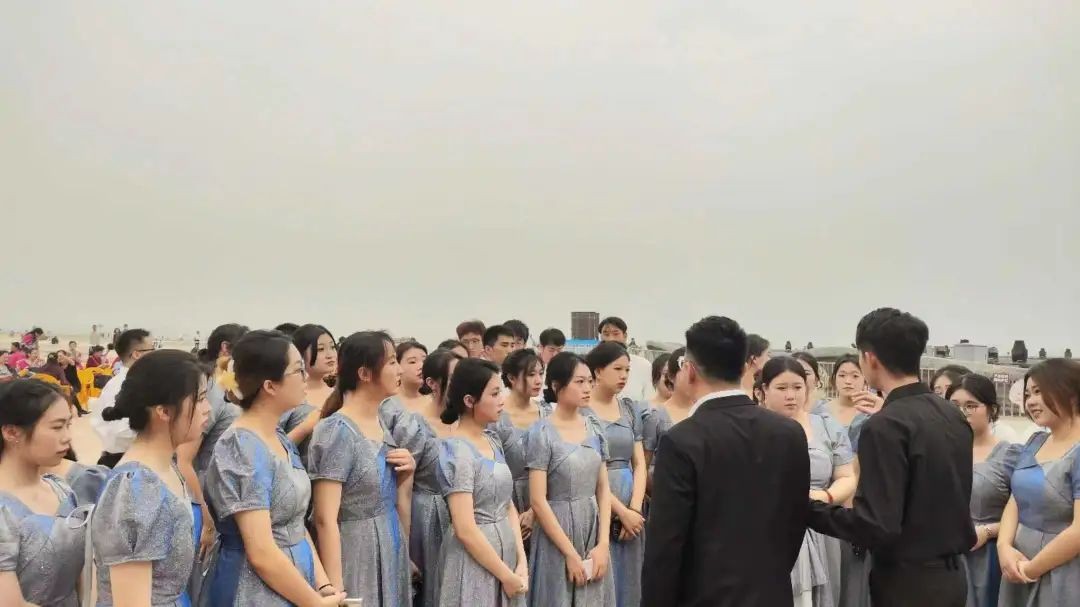 我校合唱团的同学们在团委老师的带领下以动人的旋律传递出奋进的力量和对党对祖国的浓浓情谊,令现场观众仿佛置身“红色浪潮”;或情意浓浓共谱民族团结曲,以基层百姓喜欢的民族题材铸牢中华民族共同体意识,满足现场观众对多民族音乐艺术观赏的需求。