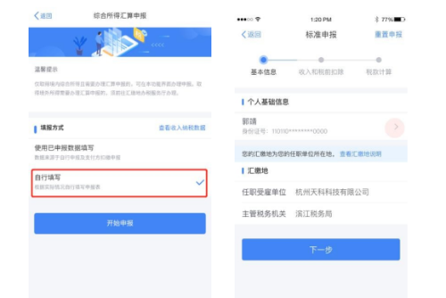 (一)核对个人基础信息、汇缴地、查看收入明细数据, 确认已缴税额。
