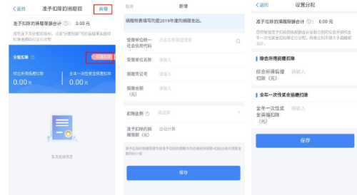 在准予扣除的捐赠额列表界面,您可进行新增和修改。