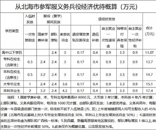 特别提醒:以下优待政策仅限从北海市各县区入伍才能享受。