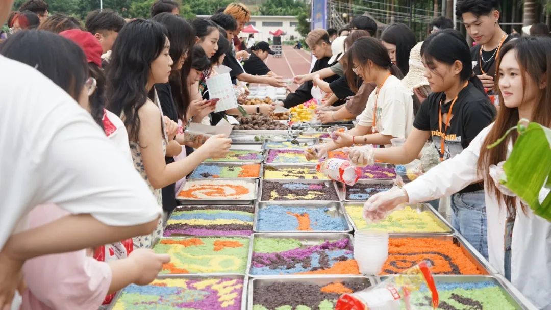 启动仪式结束后由我校团委及各二级学院分团委共同开展民族团结游园活动,分别有欢跳“竹竿舞”;谁的“绣球”投的准;“山歌”唱起来;当舌尖上的糯米饭碰撞上大彩蛋;律动舞狮;旱地龙舟;蒙眼摸福;共享踏板;投壶;民族服饰体验打卡共十项游戏。