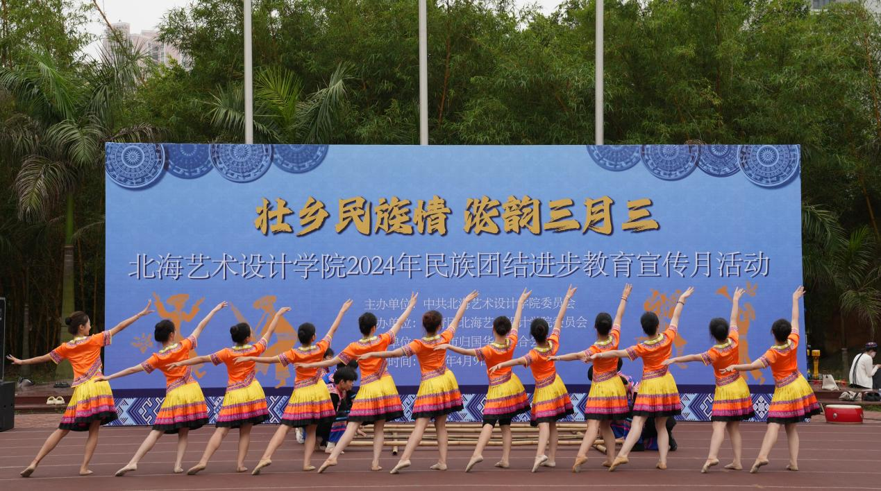 4月9日,学校党委联合学校团委、北海市归国华侨联合会在西区操场开展以“壮乡民族情 ,浓韵三月三”为主题2024年民族团结进步教育宣传月活动。