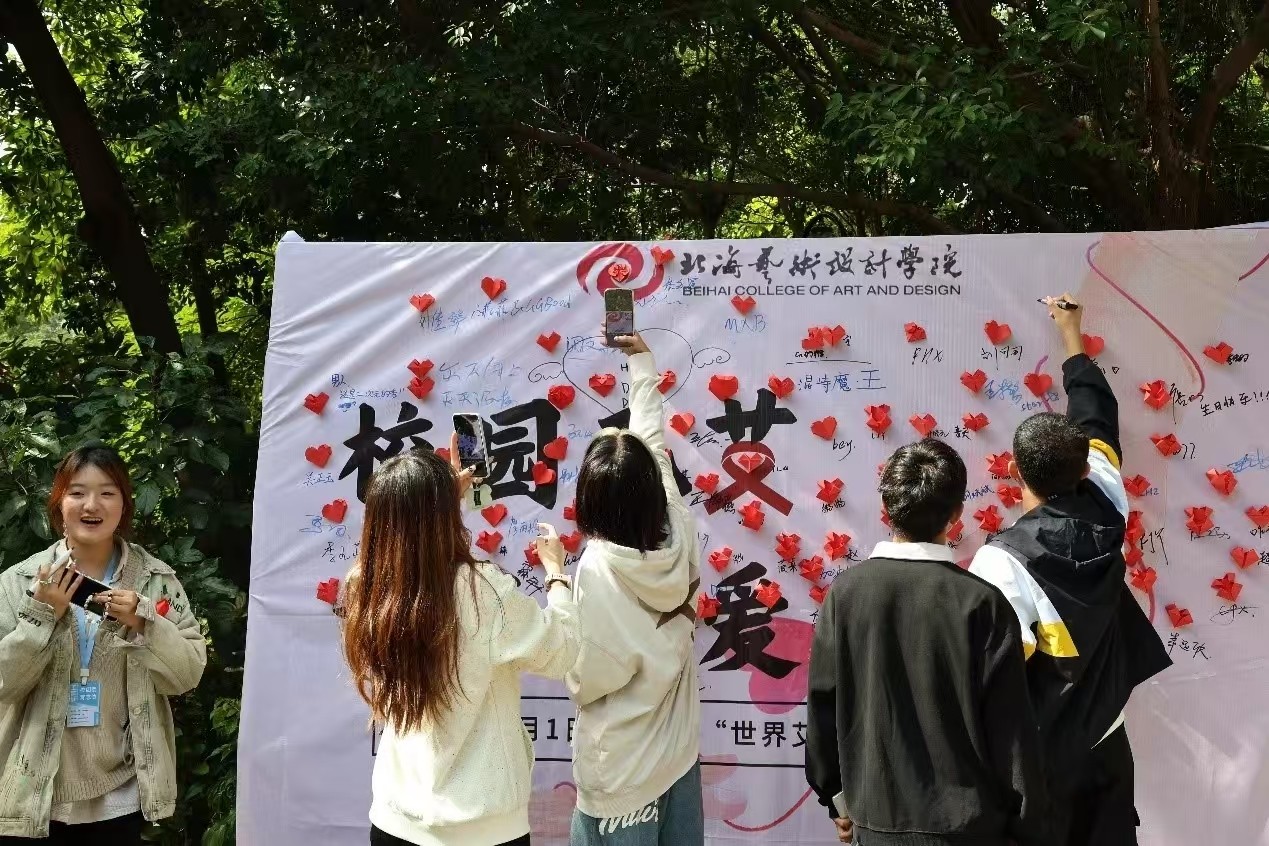 同学们纷纷拿起笔在防艾主题签名墙上签名并粘贴爱心折纸,密密麻麻的签名印证了同学们携手共建健康校园的决心,寓意着我们为预防艾滋各献上一份微薄之力!