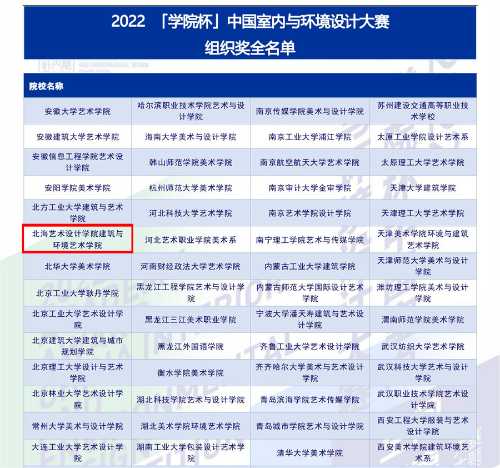 近日,2022学院杯“空间与叙事”中国室内与环境设计大赛圆满落下帷幕,经过激烈角逐,我校师生在终评中荣获优秀院校组织奖1项,室内组铜奖2项,室内组优秀奖31项,景观组优秀奖1项,综合组优秀奖1项,室内组提名奖38项,景观组提名奖7项,综合组提名奖4项,优秀指导教师3人的佳绩。