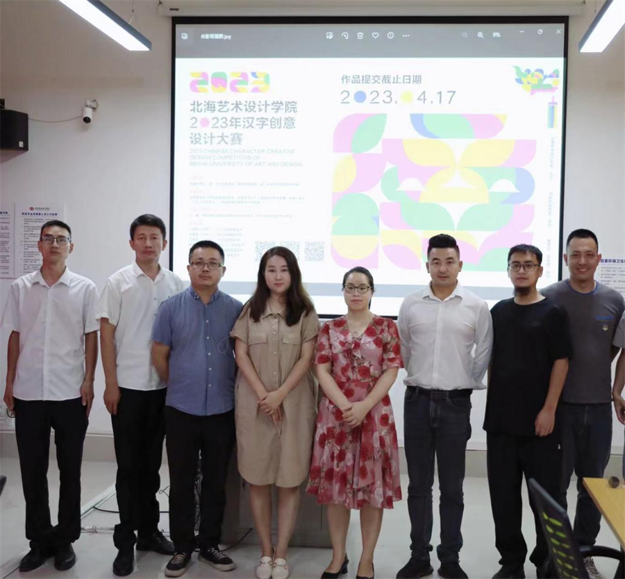 6月6日,北海艺术设计学院2023年度汉字创意设计大赛终评评审会在图书馆511室顺利举行。动画与传媒学院院长孙永辉、人文教育学院院长熊秀峰、美术学院副院长龚为、创新创业学院院长云曼、设计艺术学院副院长白建强、建筑与环境艺术学院副院长王文刚共同担任本届汉字创意设计大赛终评评委。