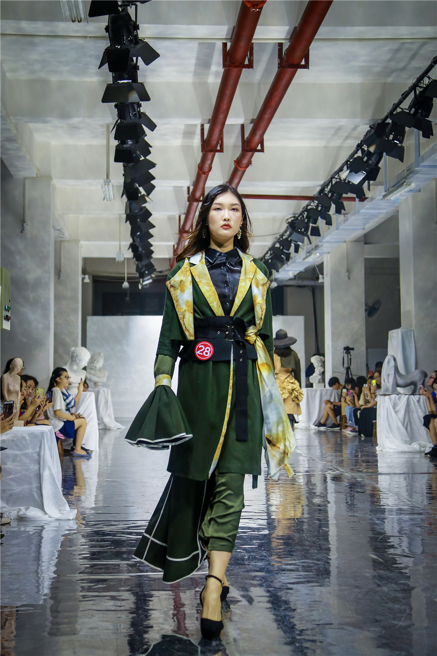 A:很多同学设计稿画的很好,做出来效果就完全达不到画的效果,一方面是设计停留于表面,一方面是制版的问题。更多的问题就是出在没有选择合适的面料。每一种面料有不同的软硬度,垂感,质感。同一颜色不同质感的面料可以塑造完全不同的廓形,所以在选择面料的时候不要只考虑颜色对上了就行了,特殊的造型一定要把面料小样买过来,做个工艺细节,来看看是不是自己想要的效果,不要盲目地选择。另外尽量选择一些可穿性的面料,一些奇葩面料很容易做出廉价感。