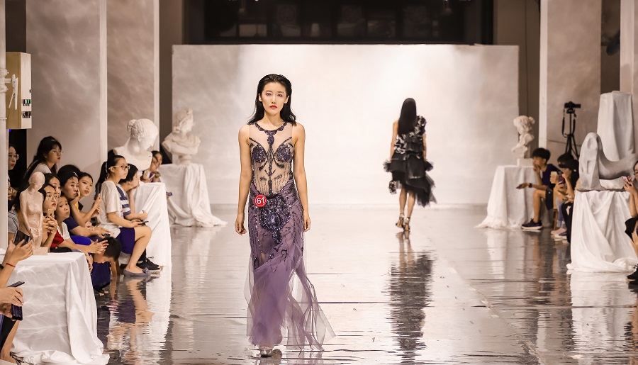 2019年6月7日晚,我校图书馆负一楼上演了一场北艺精彩绝伦的高定服装大秀,全场座无虚席。在秀场开始前,陈婷婷老师向大家详细介绍了高级定制是要有高级的面料,再贴合细腻的工艺手法,而高级定制即追求更加高要求的标准在设计、面料、工艺、版型、剪裁等诸多方面。