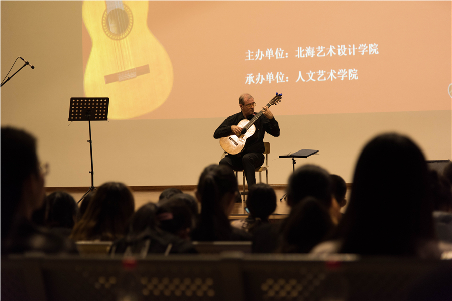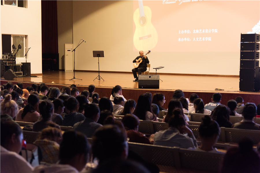 演奏会在埃瑞克·佛朗塞利先生的吉他独奏《音乐节》和《大教堂》中拉开了序幕,节奏明快却又不失哀伤之感,将现场师生带入古典音乐的“梦境”之中,让人身临其境。