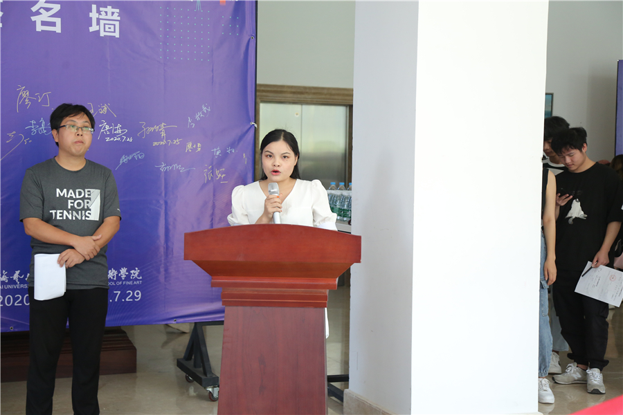 学生代表黄珍、蒋理、孙浩先后发言,他们回顾了初来北艺时的青涩、稚嫩,经历三年学习生活的紧张、彷徨、困惑,以及收获成功后的欣喜。通过本次作品展,大家在创作实践能力方面有了进一步提高,感谢学校的大力支持和老师们的悉心指导。
