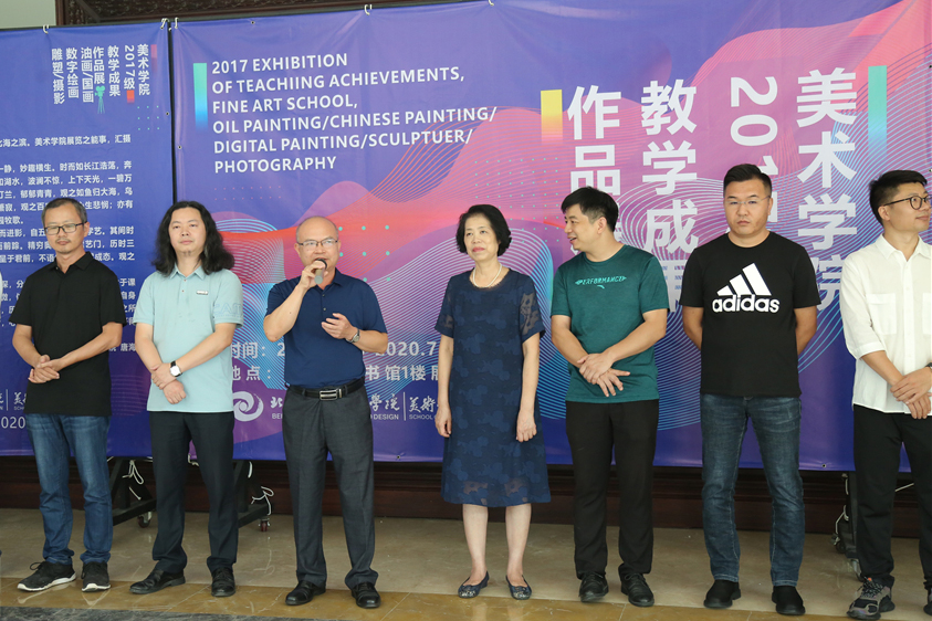 7月25日下午4:30,美术学院2017级教学成果展在西校区图书馆一楼展厅开幕。此次展览共展出绘画作品127件、摄影115件、雕塑62件。我校党委书记李高南,副校长张跃、胡胜、彭仁、王斌、邱杰等校领导以及各二级学院相关领导应邀出席开幕仪式。